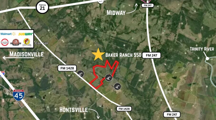 From the Buc-ee's in Madisonville take TX-21 E for 2.5 miles then turn right onto FM 1428 for 6.1 miles property will be on your left. Look for Jacobs Properties sign. Do not enter without listing agent.